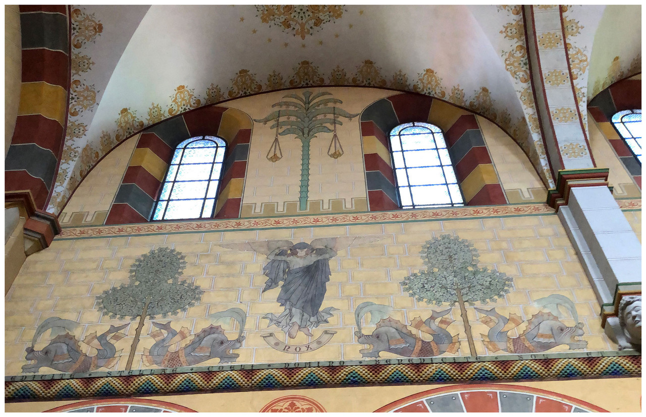 @ferry: danke für die Angabe des Ortes und des Malers, bei dem ich allerdings staune, daß er mit 40/50 "konsequent modisch" gemalt hat (zumindest halte ich die Pflanzen dafür, auch die Figur "Nox"). Ich dachte immer, je älter, desto stehengebliebener in vorigeren Stilen.
